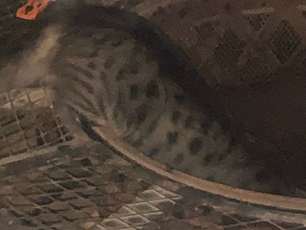 This is the only way he’ll eat his food. In the burn pit (cleaned out, since it’s summer) so he knows his food is safe, halfway sitting in the pit, munching away at the meal.