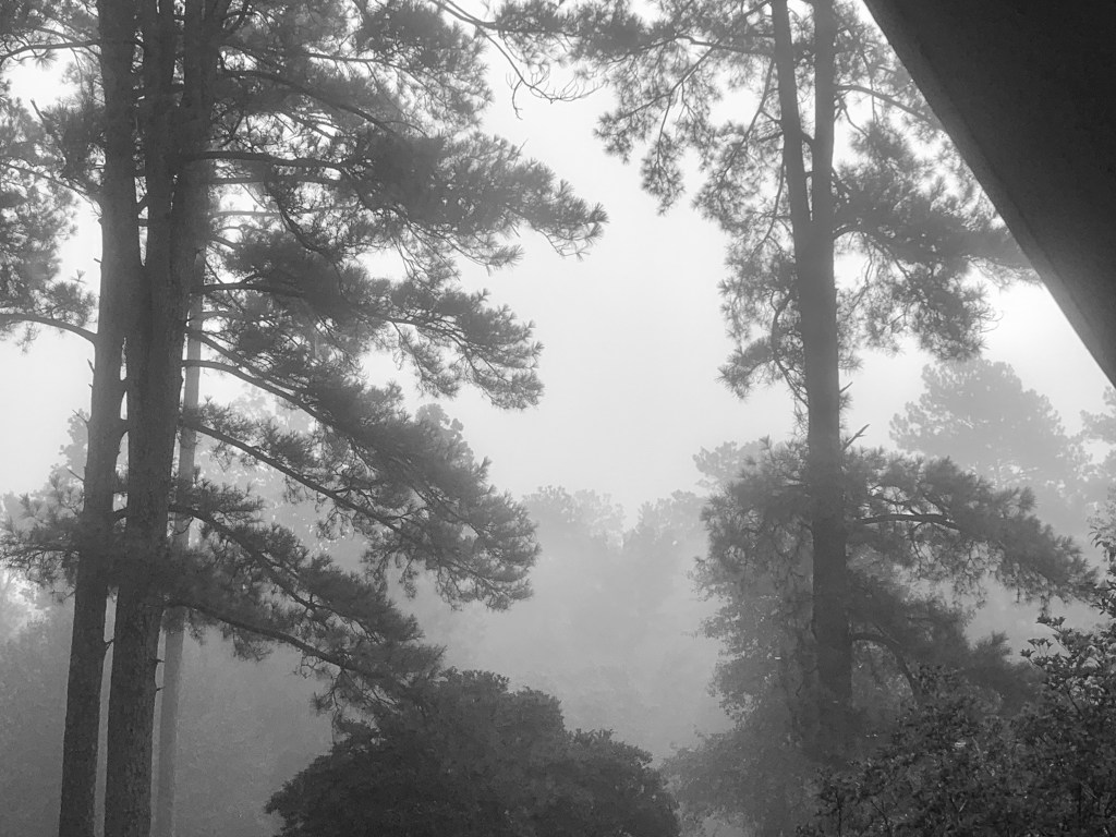 While I’ve been considering the challenges of the day, be they physical or metaphorical, I was able to enjoy a few minutes of quiet on the front porch, while the woods around us was shrouded in the Louisiana fog.