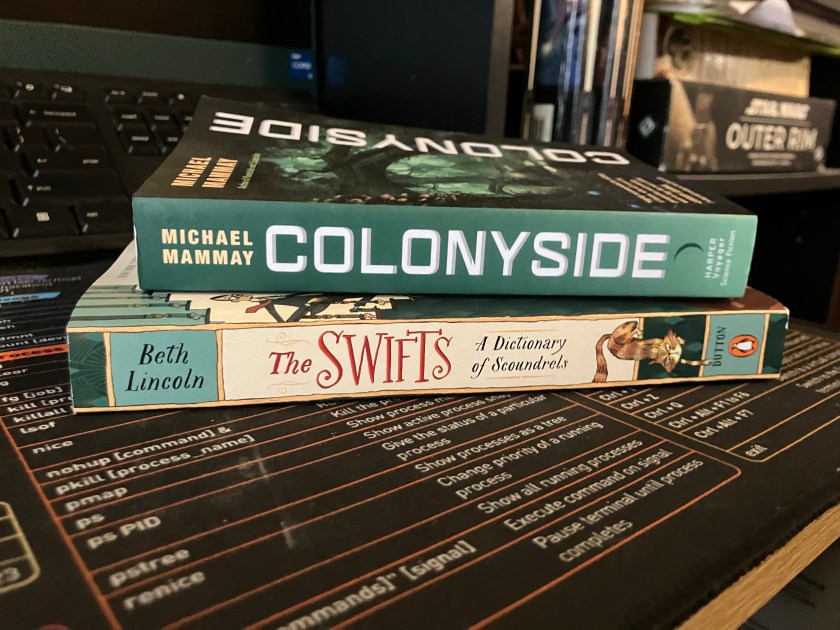 I have no idea what the Swifts book is about, and I’m not one for Young Adult stories, but it caught my attention (understandably) when Sarah pointed it out at the bookstore. That, and finding a new (to me) series to try out rounded out my birthday.