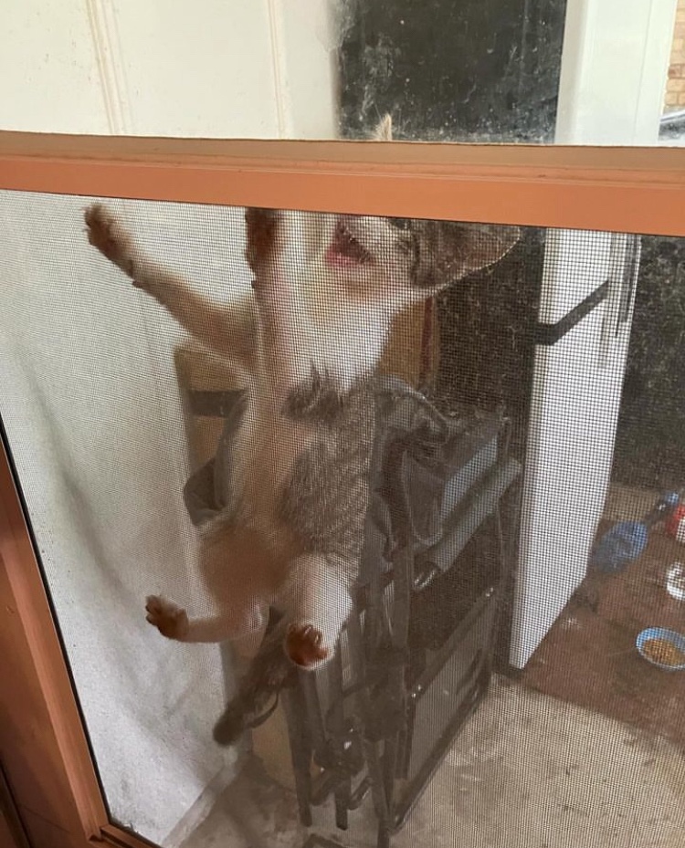 When you live out in rural areas, you have to expect critters to show up on your property. I wasn’t expecting a stray kitten to walk up and decide ‘this carport will do’, but I came home to find two bowls set out and a starved moron climbing the screen of my door.