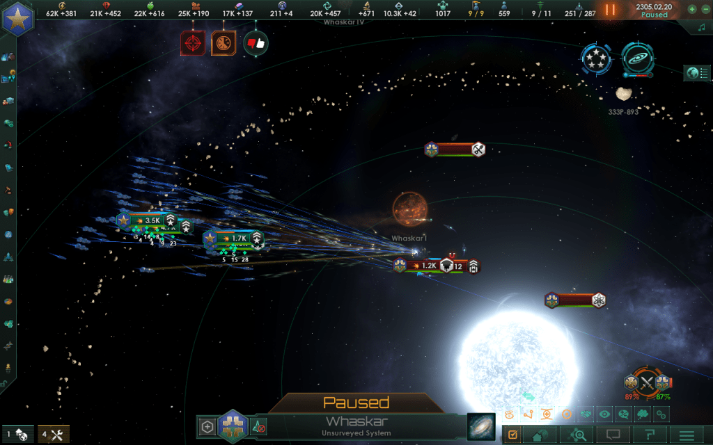 But I’ve found myself with a late evening to myself. My family was already in bed and I was at my desk, but I wasn’t really wanting to write or plot or craft something. I wanted to react to something rather than make the cause of a reaction. So I booted up Steam and sat through the updates needed to go back to Stellaris.